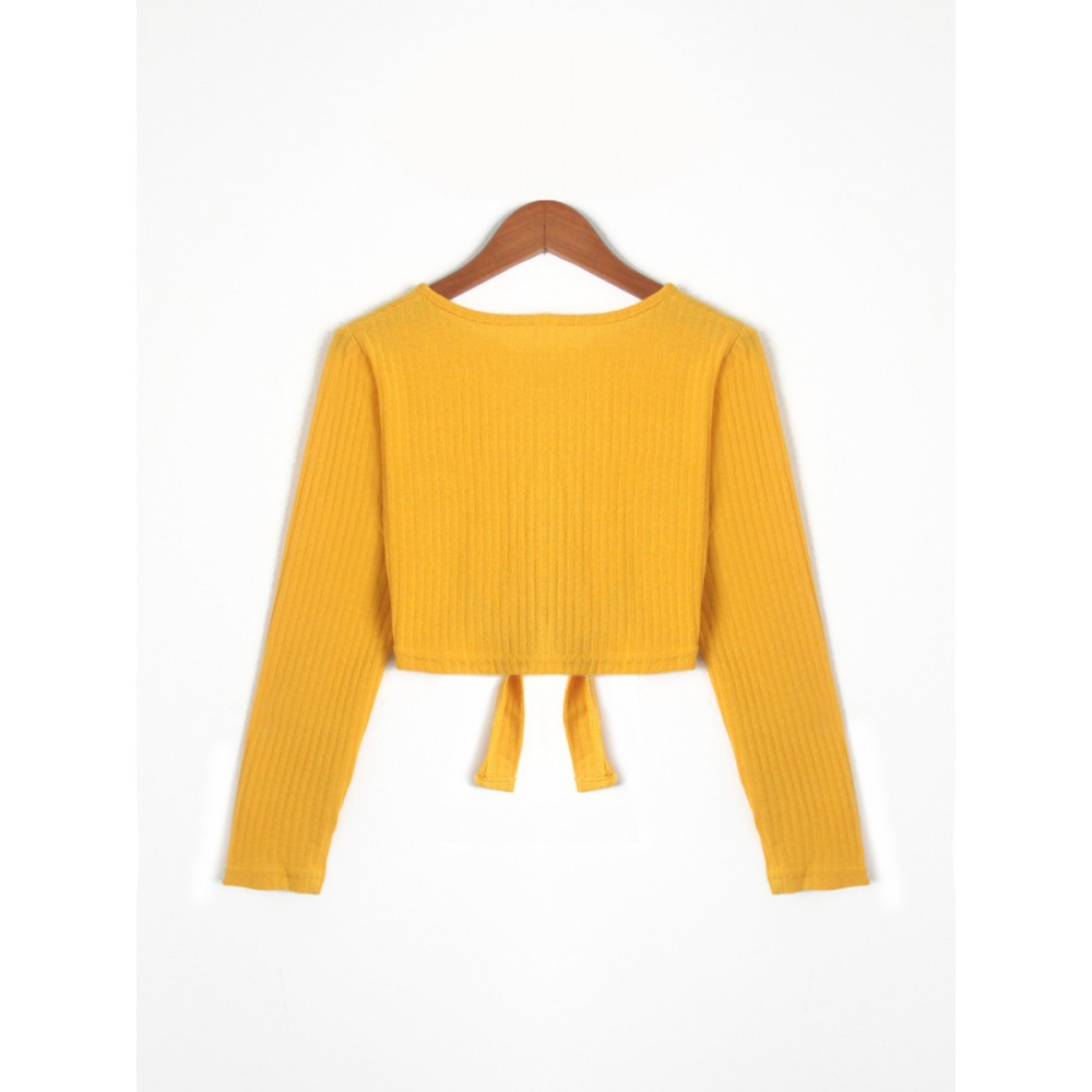 V-Neck Printing Short Long-Sleeved Multicolor T-Shirt