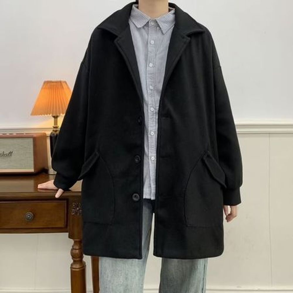 Fashion Loose Lapel Jacket for Men Solid Color Coat