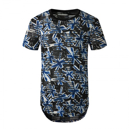 Men's Plus Size Open Smile Torn Hole Short-Sleeved Hipster Hip-Hop T-Shirt