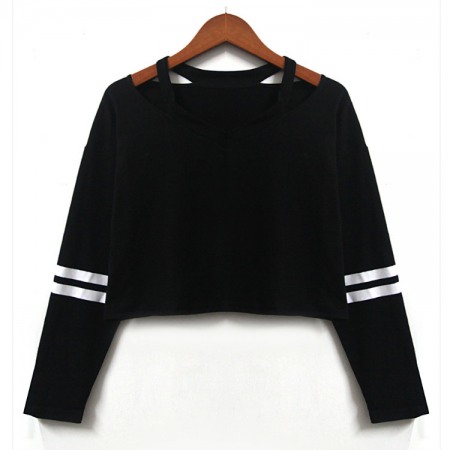 Hot Style V-Neck Hollow Planet Print Short Long-Sleeved T-Shirt